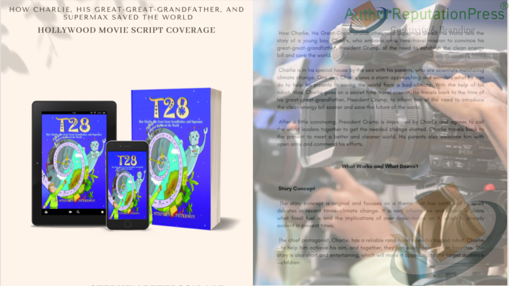 ARP’s Movie Script Coverage service aims to provide a written outline of the author’s book—a screenplay—that will be stored in a database that major studios can consult when seeking stories to adapt into films. Recently, a Hollywood-style script was written for Dr. Stephen Peterson’s “T28: How Charlie, His Great-Great-Grandfather, and Supermax Saved the World,” which is a story that can be turned into a successful and marketable screenplay. It addresses an important topic in the present society and will resonate with a lot of people, especially children.